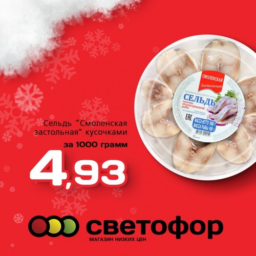 - Модель: Сельдь "Смоленская застольная" кусочками 1000гр